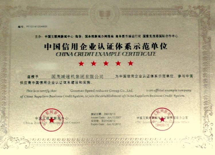 與此同年,江蘇國茂減速機股份有限公司還接連獲得“江蘇省高新技術企業(yè)”、“江蘇省工程技術中心”、“常州市四星級明星企業(yè)”、“常州市A級納稅信用等級單位”、“武進區(qū)‘十一五’行業(yè)發(fā)展成就獎”、“湖塘鎮(zhèn)商會會長單位”等殊榮。另外,江蘇國茂還于2011年,光榮獲得“江蘇省企業(yè)文化建設先進人物”、“江蘇省平安企業(yè)”、“武進區(qū)首屆慈善事業(yè)突出貢獻獎” 等等重要榮譽;在2012年1月份,成功被評定為“常州市五星級明星企業(yè)”。